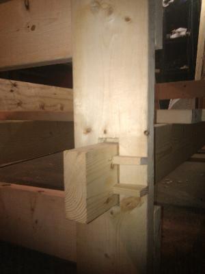 Here's a closeup of the key mortises. Maybe you can see how they slant, it's hard to tell.