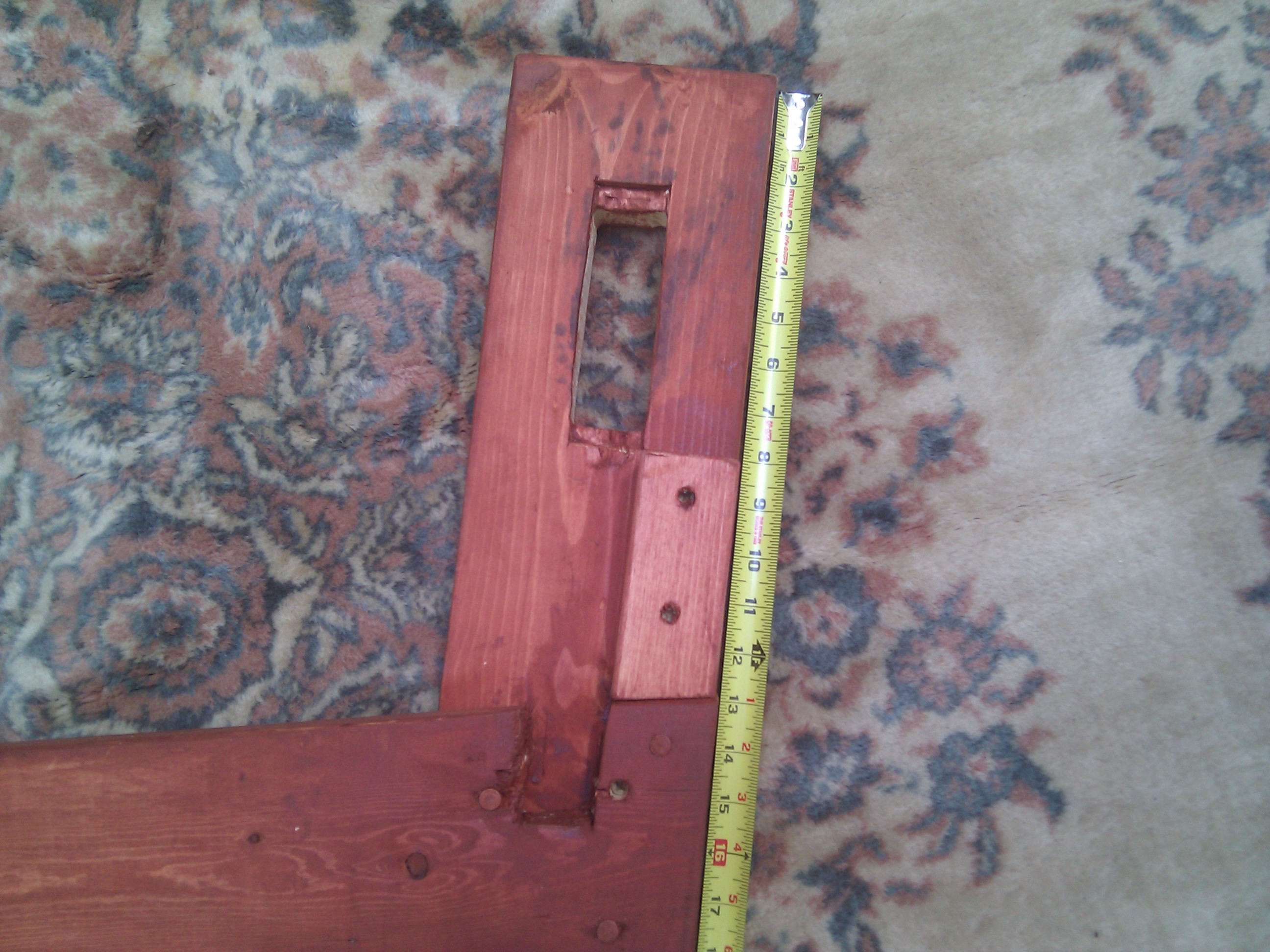 For another, you'll notice in the final assembled photo, above, there's an extra back rail for lower back support. This was retrofitted on, by cutting a wedge into the armrest piece and adding a reinforcement. More on this below.