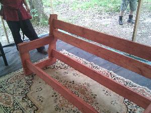 We ended up making a bunch of spare tusks, since they were fairly thin and would be a pain to replace while out in the woods. Even if we make more of these couches out of pine, I'll seriously think about making the tusks out of something stronger. However, as it turned out, the tusks mostly did quite all right. We only had two break, and that was when we were pounding them out at the end.